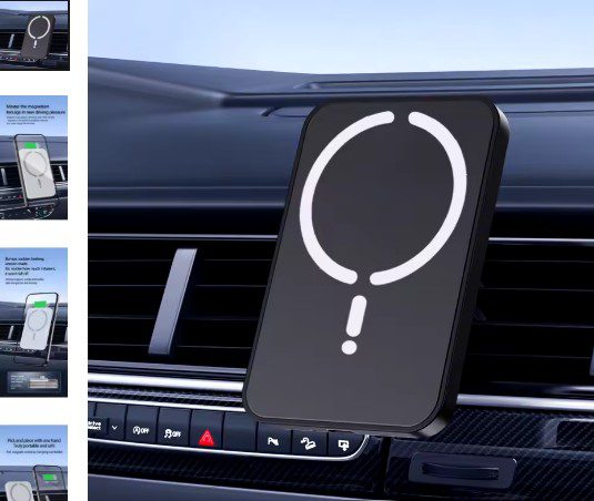 Stay charged and hands-free while driving with the 15W Magnetic Car Wireless Charger for MagSafe iPhones. Designed for iPhone 12 to 16 Pro Max, this wireless charger doubles as a sturdy air vent car phone holder. Enjoy fast, secure, and reliable charging every time you hit the road.