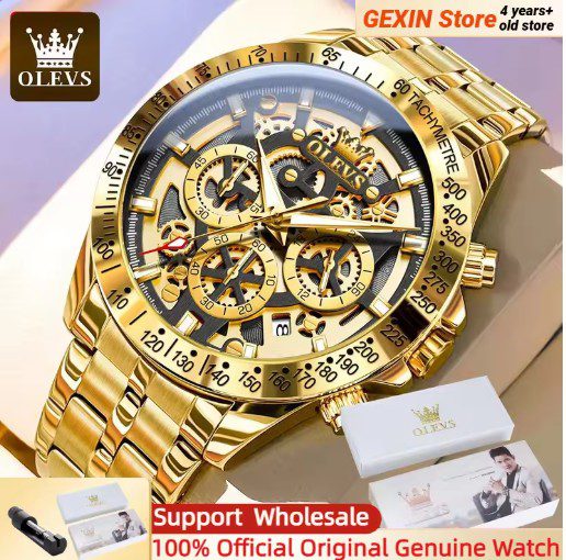 OLEVS Lxuxry Brand Gold Men’s Watches Full Skeleton Stainless steel